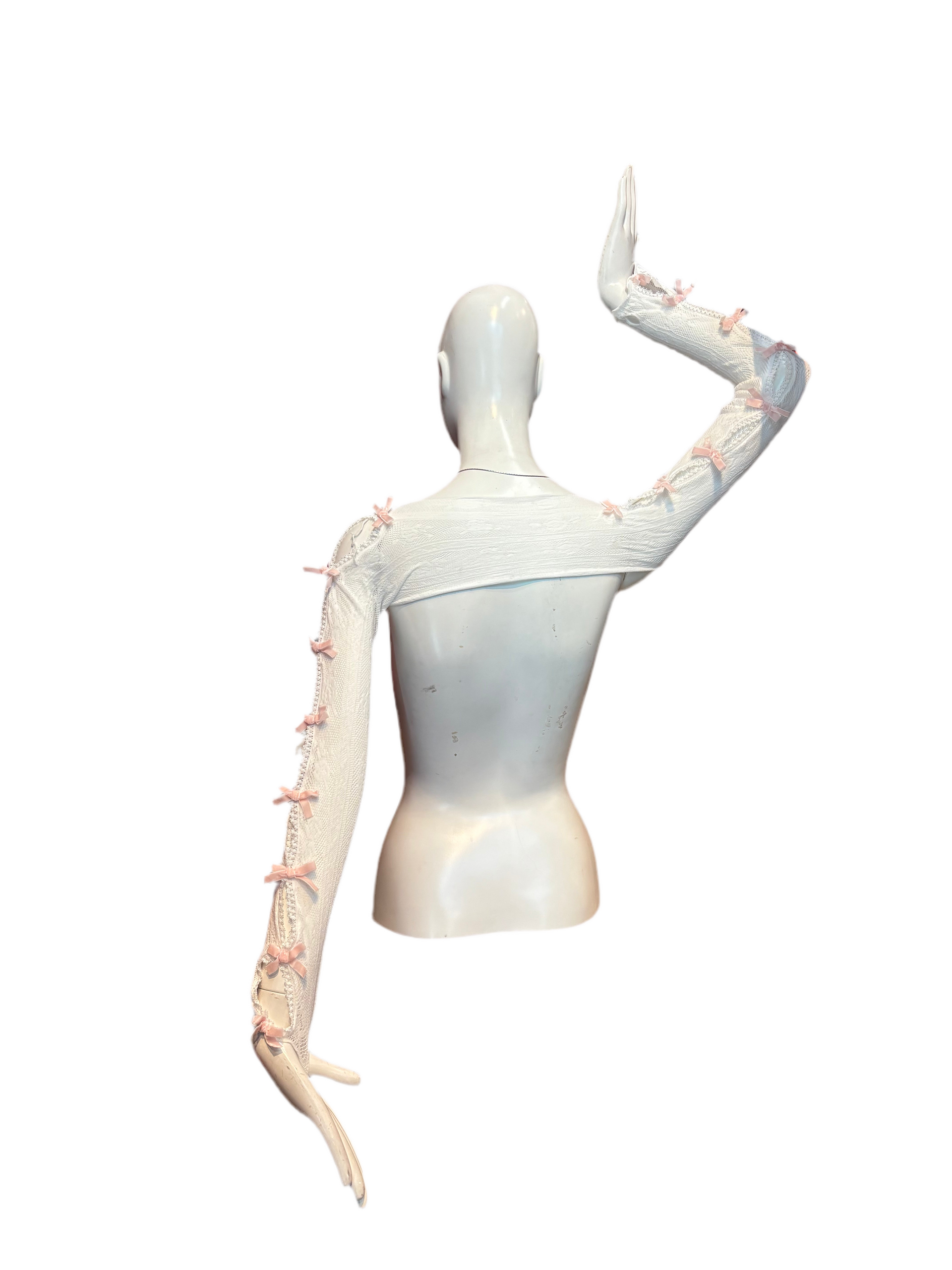 Lace shrug with pink bow